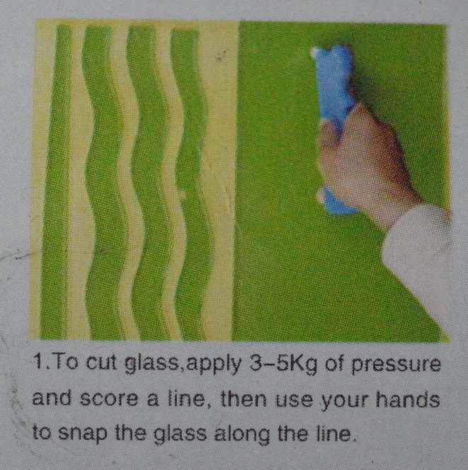 การหั่นกระจกแล้วเคอะออกอย่างง่าย การตัดแผ่นกระเบื้องตามช่องอย่างง่าย
