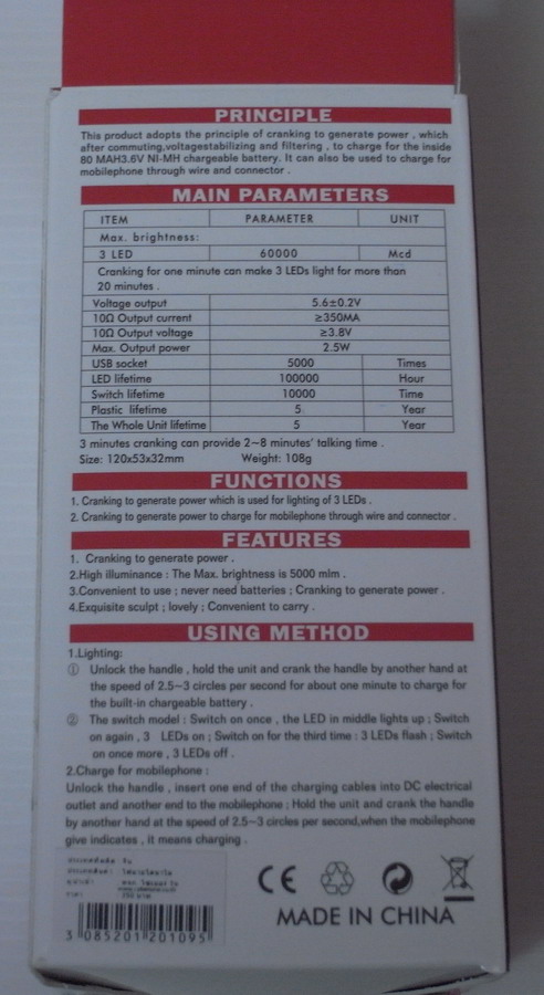 350.- ไม่มีขายที่อื่น 100% เป็นไฟฉายอมตะ ไม่ต้องใส่ถ่าย ไม่ต้องชาร์จไฟ ให้พลังงานจากการหมุน พิเศษที่สุดคือ ช่องต่อไฟออก USB ซึ่งเป็นรุ่นสั่งทำพิเศษ สามารถใช้กับอุปกรณ์หลากหลายชนิด เช่น โทรศัพท์ พัดลม ไฟฉาย แบตเตอรี่ พิเศษสุด เฉพาะ Bestgoody9999.com เท่านั้น สินค้าแนะนำสำหรับเตรียมพร้อมภัยพิบัติโลก เช่นน้ำท่วม ไม่มีไฟฟ้าใช้ หน้ากล่อง