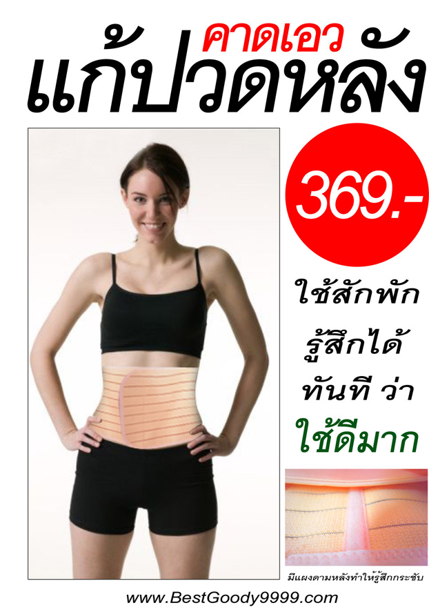 คาดเอวแก้ปวดหลัง ใช้รัดหน้าท้อง ด้านหลังมีแผงดามหลังอยู่ เพื่อดามหลังของคุณให้ไม่งอ อันเป็นสาเหตุของอาการปวดหลัง ใช้เพียง 5-10 นาที จะรู้สึกได้ทันทีว่าดีมาก ผ้าไม่สะสมกลิ่นเหมือนทั่วไป สามารถซักได้ สินค้าตัวนี้ขายดีมาก เอาลองไปใช้สักอัน ไม่มีผิดหวังแน่นอน สินค้าจัดจำหน่ายโดยเว๊ปเราเท่านั้น
