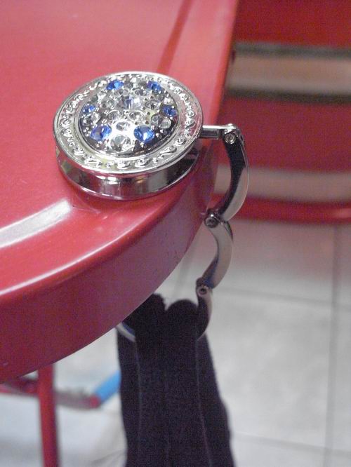 มีเฉพาะในต่างประเทศเท่านั้น Description: Thanks to My Metal Bag Hook/Metal Purse Holder/Metal Handbag Hanger there is now a clever accessory to take care of your handbag. At the restaurant or in the office, you don't have to put your precious Purse on the floor or on your knees anymore. Simply hook your purse Holder by placing the disk on the edge of any table and hang your handbag to it. With stylish, vibrant and practical designs, bag Holder became the most fashion collection Now. A personalized Handbag Hanger is a practical and elegant gift. An innovative cooperate gift your client will appreciate. Your brand will get great exposure each time a handbag is hooked to a table.